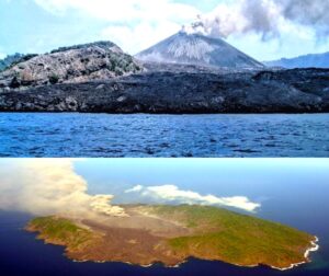 नावाप्रमाणेच ओसाड असलेल्या या लहानशा बेटाचा बराचसा भाग ज्वालामुखी पर्वताने व्यापलेला आहे. बॅरन बेटावरचा हा ज्वालामुखी केंद्रीय पद्धतीचा असून त्याचे उद्रेक स्ट्राँबोलीयन ते हवाई प्रकारचे झालेले आहेत. मध्यवर्ती नळीतून बाहेर फेकल्या गेलेल्या लाव्हारसाच्या संचयनातून तेथे सागरतळापासून अंदाजे दोन हजार मीटर उंचीच्या शंकू पर्वताची निर्मिती झालेली आहे. प्रत्येक उद्रेकानंतर त्याची उंची वाढत जाते. शिखरावर साधारण दोन किमी. व्यासाचे ज्वालामुखी कुंड निर्माण झाले आहे. भारतीय भूपट्टाचे बर्मा भूपट्टाच्या खाली अधोगमन झाल्यामुळे बॅरन बेटाची निर्मिती झालेली असावी, असा अंदाज आहे. अलीकडच्या अभ्यासातून हे सिद्ध झाले आहे की, बॅरन बेटाच्या भूपृष्ठावरील ज्वालामुखी खडक सुमारे १.६ द. ल. वर्षांपूर्वी निर्माण झालेले असावेत; तर या बेटाच्या लगतचे महासागरी तळ सुमारे १०६ द. ल. वर्षांपूर्वी ज्वालामुखी क्रियेतून निर्माण झालेले असावेत. यावरून बॅरन बेटावरील ज्वालामुखी लाखो वर्षांपूर्वीपासून जागृत स्वरूपात आहेत, हे स्प्ष्ट होते. गेल्या काही शतकांत झालेल्या उद्रेकांच्या नोंदींवरूनही हे सिद्ध होते. बॅरन बेटावरील ज्वालामुखीचा पहिला नोंदणीकृत उद्रेक इ. स. १७८७ मधील असून त्यानंतर अनेकदा उद्रेक झालेले आहेत. इ. स. १७८९, १७९५, १८०३-०४ व १८५२ मध्ये झालेल्या उद्रेकांचीही नोंद आढळते. त्यानंतर जवळजवळ दीडशे वर्षांच्या निद्रितावस्थेनंतर १९९१ मध्ये उद्रेक झाला. हा उद्रेक पुढे १९९३ पर्यंत अधूनमधून धुमसत होता. याचा १९९५ मध्ये पुन्हा एकदा मोठा उद्रेक झाला. या वेळी बाहेर फेकला गेलेला लाव्हा दीड किमी. पर्यंत वाहत जाऊन समुद्रात मिसळला होता. या लाव्हारसाची दीड किमी. लांबीची व ५० मी. रुंदीची मोठी नदीच तयार झाली होती. लाव्हा उत्सर्जनापाठोपाठ मोठा गडगडाट करीत राखेचे २०० मी. उंचीचे लोट, पाण्याची वाफ आणि वायूचे फवारे बॅरन ज्वालामुखीच्या कुंडातून बाहेर फेकले गेले. त्यामुळे बेटावरील पक्षी व प्राण्यांची संख्या बरीच कमी झाली. त्यानंतर २००५-०७, २०१७-१८ व जानेवारी २०२२ मध्ये झालेले उद्रेक त्यामानाने कमी तीव्रतेचे होते. सर्वांत अलीकडे १३ व २० सप्टेंबर २०२५ या दिवशी उद्रेक झाले आहेत. या उद्रेकाच्या वेळी बाहेर फेकलेली राख आकाशात ईशान्येच्या दिशेने सुमारे ३,००० मी. उंचीपर्यंत गेली होती.