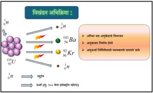 अणुकेंद्रकीय अभिक्रियांचे विखंडन अभिक्रिया (nuclear fission; भंजन अभिक्रिया) आणि संघटन अभिक्रिया (nuclear fusion) असे दोन प्रकार आहेत. विखंडन अभिक्रियेत जड अणुकेंद्र हलक्या अणुकेंद्रांमध्ये तुटते आणि मोठ्या प्रमाणात ऊर्जा मुक्त होते. युरेनियम-२३५ या अणुकेंद्रावर मंद न्यूट्रॉन आदळल्यास ते अस्थिर अवस्थेत जाऊन तुलनेने दोन हलक्या अणुकेंद्रांमध्ये विखंडित होतात आणि त्यातून मोठ्या प्रमाणात ऊर्जा तसेच दोन ते तीन अतिरिक्त न्यूट्रॉन निर्माण होतात. साधारणत: ही नियंत्रित विखंडन प्रक्रिया अणुऊर्जा प्रकल्पांमध्ये विद्युतनिर्मितीसाठी वापरली जाते.