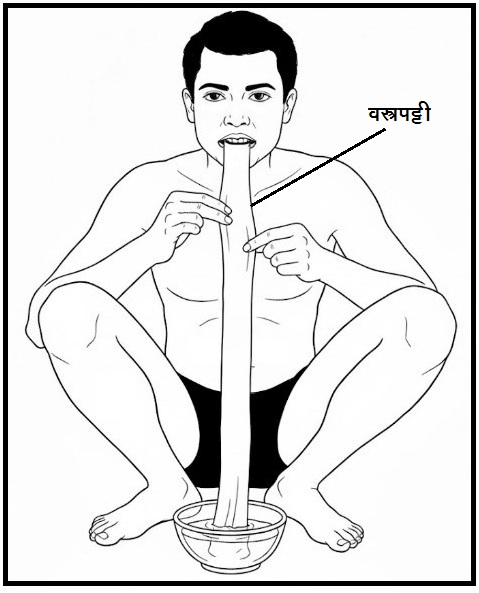 रक्तदाब, हृदयविकार असल्यास ही क्रिया करू नये. पहिल्या प्रयत्नात पूर्ण वस्त्र गिळणे शक्य नाही, म्हणून वस्त्र गिळण्याची क्रिया हळूहळू आत्मसात करावी. रोज अधिकाधिक वस्त्र गिळण्याचा सराव केल्याने पूर्ण वस्त्र गिळण्याची कला साध्य होण्यास मदत होते. वस्त्र २० मिनिटांपेक्षा जास्त काळ जठरात ठेवू नये. जरी अर्धवट वस्त्र आत गेले असले तरी २० मिनिटांची मर्यादा ओलांडू नये. पूर्ण वस्त्र आत गिळण्याचा अट्टाहास करू नये. जठर आणि लहान आतडे यांमधील द्वार (पायलोरिक स्फिंक्टर) उघडून वस्त्र ग्रहणीत (पक्वाशयात;duodenum) जाण्याची शक्यता टाळता येत नाही. अशा वेळेस वस्त्र बाहेर काढणे अवघड किंवा हानिकारक ठरू शकते. ही क्रिया योगशिक्षकांच्या मार्गदर्शनाखाली करावी.